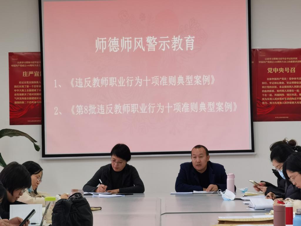 为进一步加强师德师风建设,充分发挥典型案例在师德师风建设中的警示震慑作用,2021年12月7日下午,bv伟德国际1946全体教师在312会议室开展师德师风警示教育活动,会议由张鹏宇书记主持。