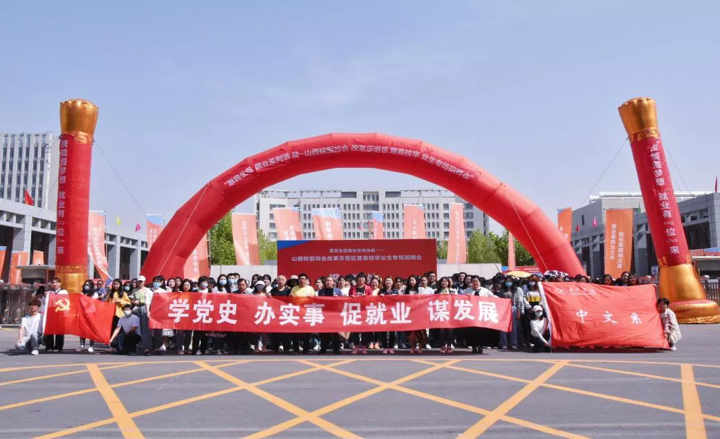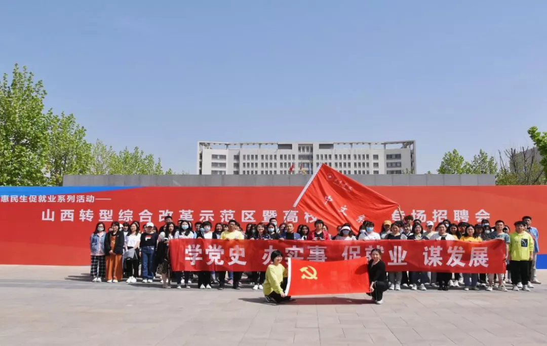 2021年5月9日上午bv伟德国际1946党总支开展“学党史办实事促就业谋发展”主题党日活动。bv伟德国际1946全体处科级干部、行政人员、各支部书记、毕业班班主任、毕业年级学生及大三年级党员学生共380余人参加了活动。本次活动以山西转型综合改革示范区暨高校毕业生专场招聘会为平台,带领学生“走出去”,帮助学生“找工作”,全力助推我系毕业生就业工作。