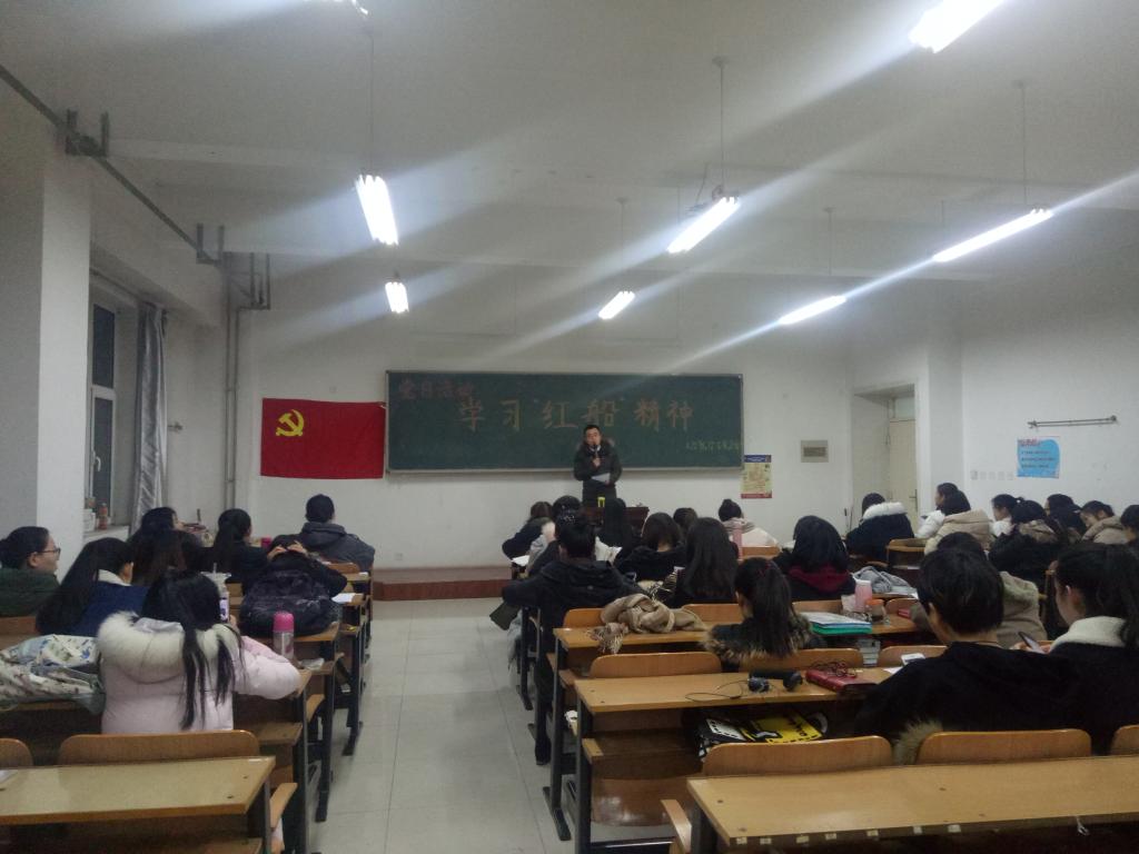 2018年1月4日晚19:00,文学院全体学生党员在文澜苑②127教室开展了以“学习红船精神,走在时代前列”为主题的党日活动。活动由文学院专职辅导员贾午耀老师主持。