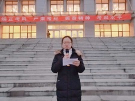 升旗仪式在国旗护卫队的出场中拉开序幕。他们紧握手中的国旗,迈着矫健的步伐,意气风发,气宇轩昂地走向升旗台。前导兵挥动着国旗,庄严敬礼。紧接着,伴随着激昂雄壮的国歌声,鲜艳的五星红旗冉冉升起,迎风飘扬,全体学生肃立注目,看着国旗不断地升起,直至国旗定格在旗杆的上方才目视前方。随后,17级学生代表龚艺上台发言,她勉励大一新生把握当下,砥砺前行。同时,她强调大家一定要不断加快前进的步伐,明确奋斗目标,提高自身综合能力,树立正确的人生价值观,从而成为更好的自己。最后,她祝愿我院全体学生都能永怀赤子之心,追逐梦想,奏响属于自己的青春之歌。